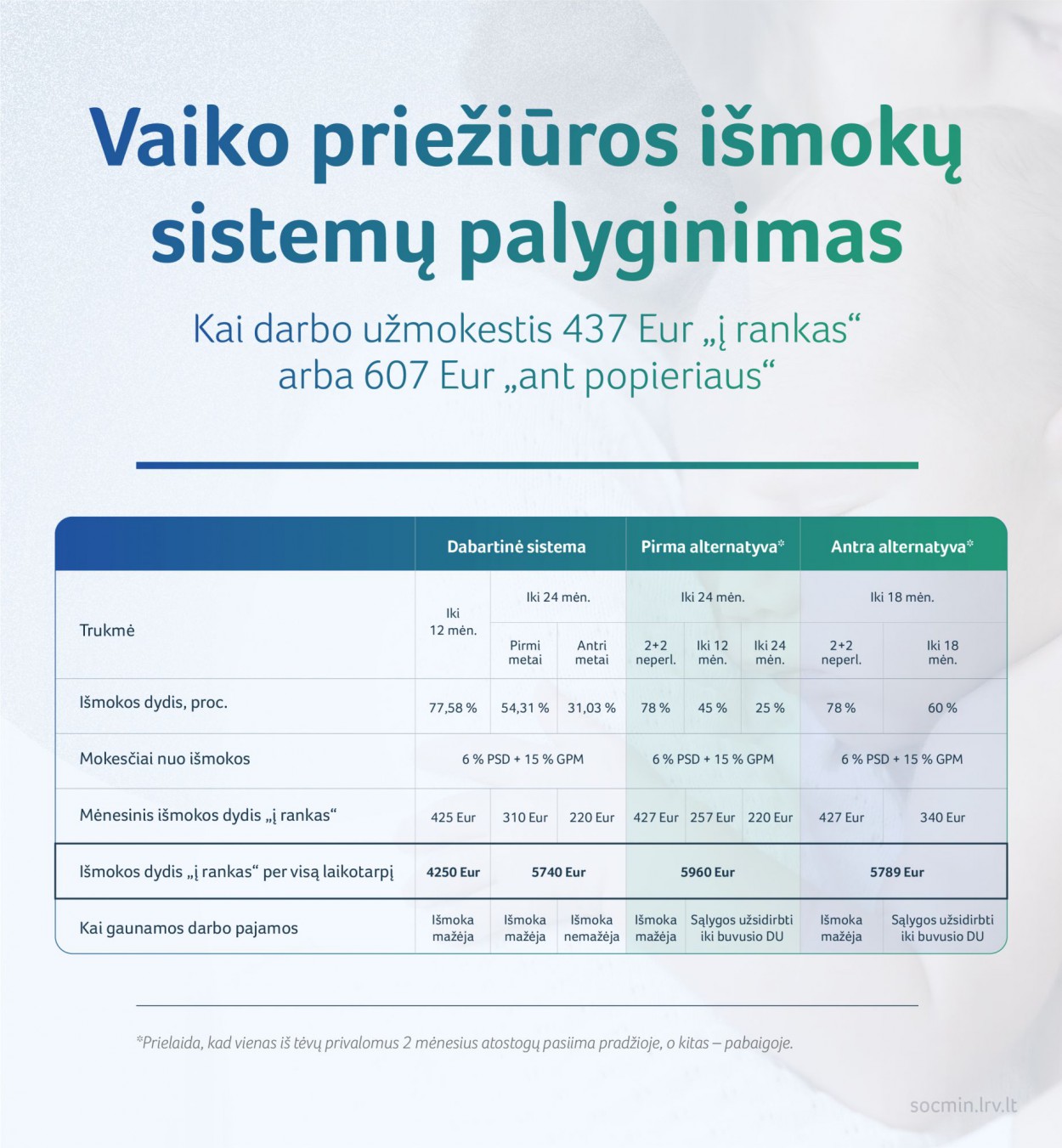 Antra alternatyva: vaiko priežiūra iki 18 mėnesių, bet išmokos didesnės