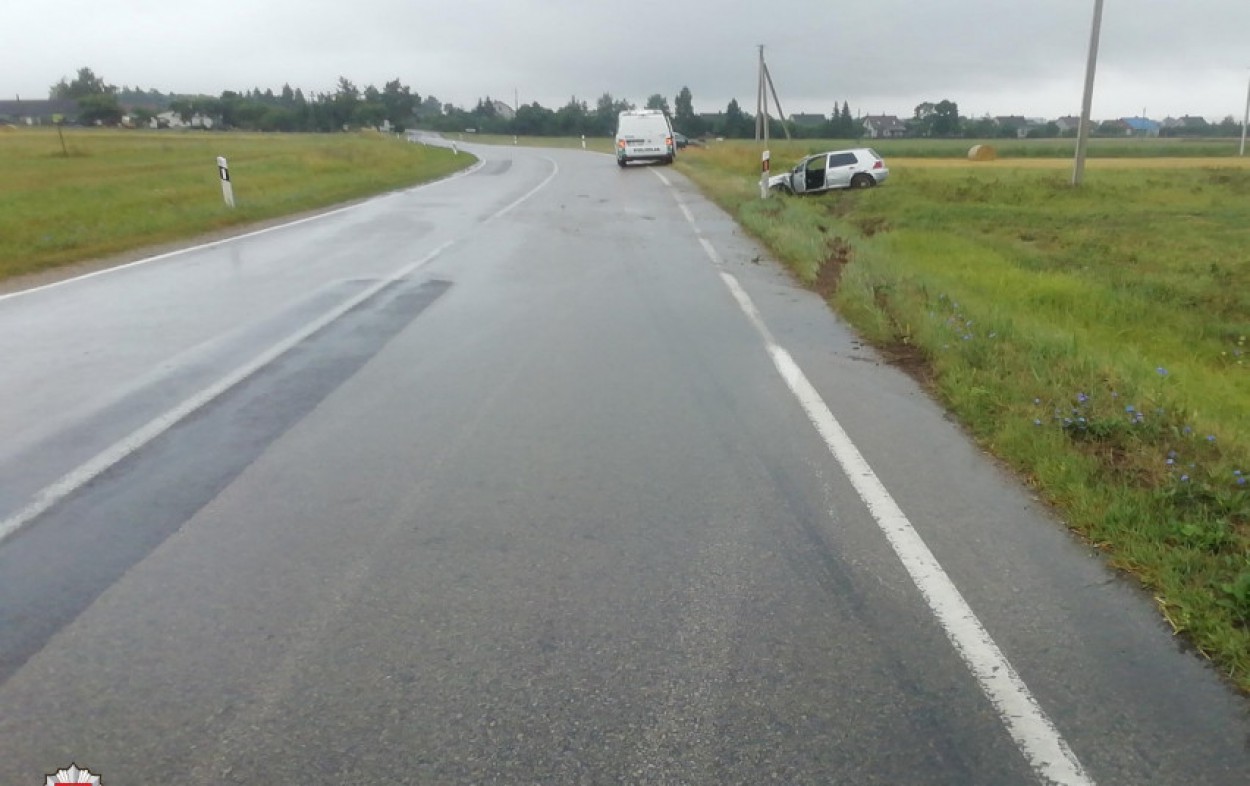 Po aštuntos ryto, lyjant, Jonavos rajone, kelyje Vilijampolė–Žeimiai–Šėta, vairuojamo automobilio „VW Golf“ nesuvaldė 48 metų moteris. Vingyje į dešinę automobilis nuvažiavo nuo kelio ir apvirto, nukentėjo 24 metų keleivis.