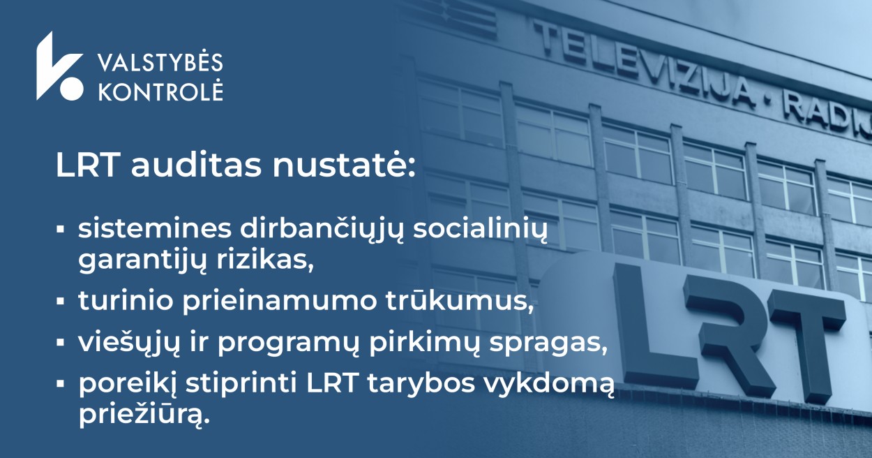 Vis dar nepakankamas LRT radijo ir TV programų prieinamumas asmenims, turintiems klausos ar regos negalią. LRT įstatyme numatyta, kad programų su lietuviškais subtitrais trukmė turi sudaryti ne mažiau kaip 50 proc. viso mėnesio transliavimo laiko. Tačiau 2021–2024 m. šių programų procentas išaugo vos 1,03 proc. punkto (nuo 12,67 iki 13,70 proc.) ir nesiekė 5 proc. augimo kasmet iki bus pasiekta 50 proc. Programos, verčiamos į lietuvių gestų kalbą 2024 m. nesiekė bent 1 proc. augimo iki bus pasiekta 20 proc. mėnesio transliavimo laiko riba. Siekiant, kad būtų užtikrintas programų prieinamumas, Valstybės kontrolė rekomendavo nustatyti programų su lietuviškais subtitrais ir verčiamų į lietuvių gestų kalbą, metinius rodiklius ir jų įgyvendinimo grafiką.