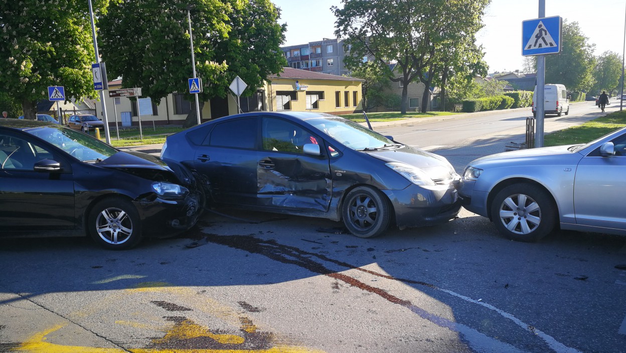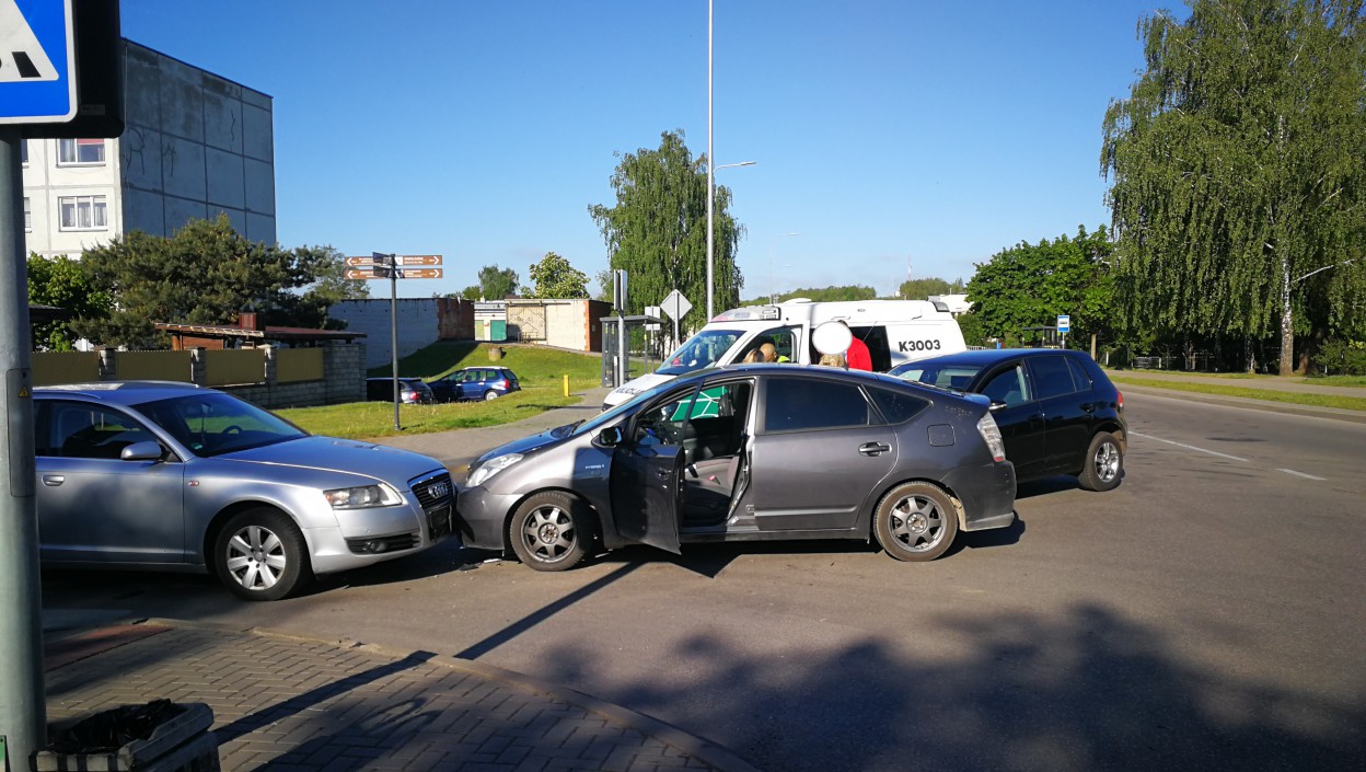 Gegužės 26 dienos rytinio piko metu Vasario 16 - osios ir Sodų gatvių sankryžoje susidūrė trys automobiliai – „Toyota“, „Audi“ ir „Golf“.