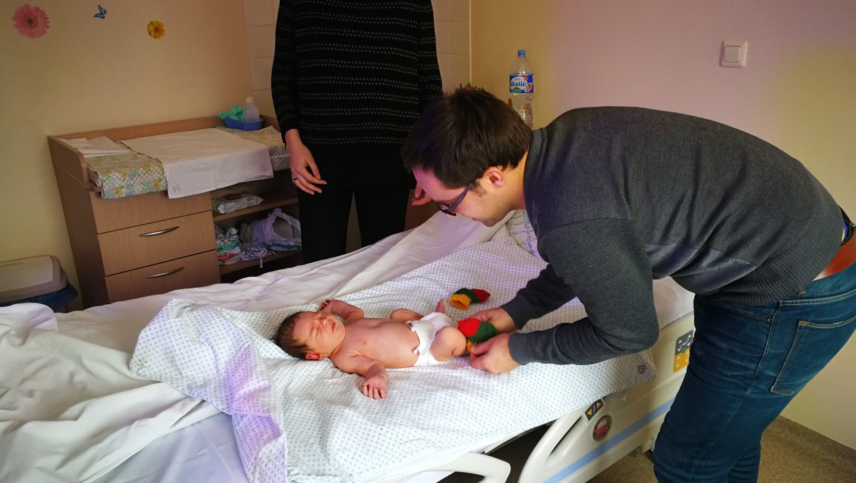 „Daktarai sakė, kad mano gimdymo terminas 10-17 dienos. Į ligoninę atvažiavai per Valentino dieną, bet džiugu, kad mažylis gimė būtent per šią valstybinę šventę. Mums u vyru Martynu gimė berniukas ir, kadangi tai tokia diena, vasario 16 –oji, jis bus Jokūbas – manau tai tikras lietuviškas vardas. Ir gimtadienio dieną teks paminėti abi šventes. Daktarai nesitikėjo, kad berniukas gims 4 kg., 400 gr., 56 cm., nes nei svorio priaugau, nei pilvas buvo didelis, todėl galima sakyti, kad tikras dičkis, bet ir gimdymas nebuvo iš lengvųjų. Šiandien mus jau paleidžia iš ligoninės“, - įspūdžiais dalinasi Natalija Pinkevičienė, susilaukusi šimtmečio berniuko.