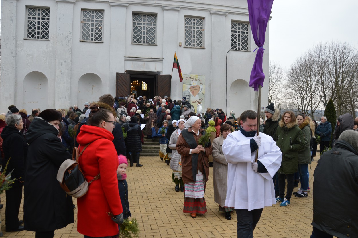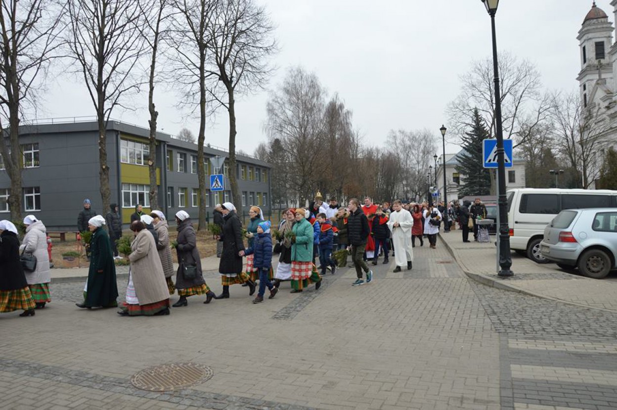 Po šv. Mišių tikintieji ėjo Verbų sekmadienio procesiją Jonavos miesto gatvėmis.
