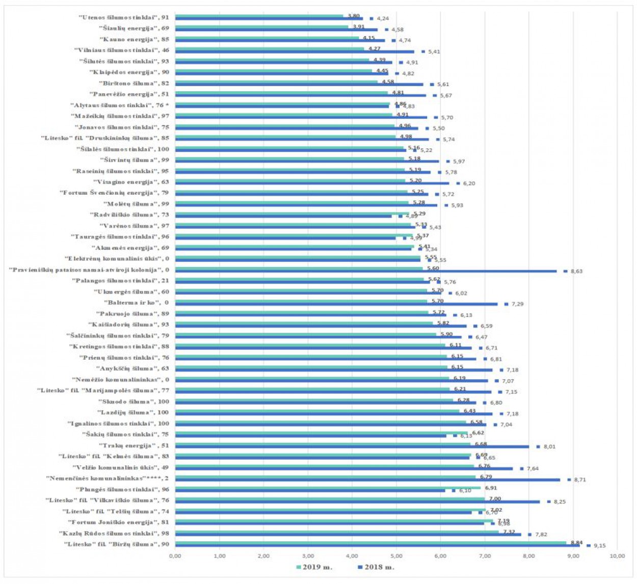 Parengta pagal Valstybinės energetikos reguliavimo tarybos duomenis