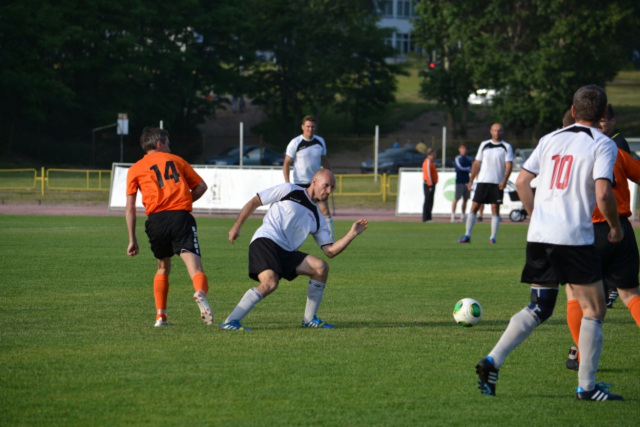 Be pralaimėjimų žengiantis „Veteranas“ žaidė su „Mėlynai-balti“ ekipa, kuri taip pat savo sąskaitoje turėjo maksimalų taškų skaičių. Jau 12 min. po dviejų I.Čėsnos įvarčių į priekį išsiveržė „Mėlynai-balti“, bet senjorai dar pirmajame kėlinyje persvėrė rezultatą, o tik prasidėjus antrajai žaidimo pusei rezultatyviausias pirmenybių žaidėjas J.Medvedevas dar labiau įtvirtino „Veterano“ pranašumą (4:2). Tačiau „Mėlynai-balti“ ekipos jaunimas rankų nenuleido ir netrukus išlygino rezultatą, o dar po kelių senjorų futbolininkų klaidų sugebėjo pasiekti ir pergalę rezultatu 6:4 (2:3).