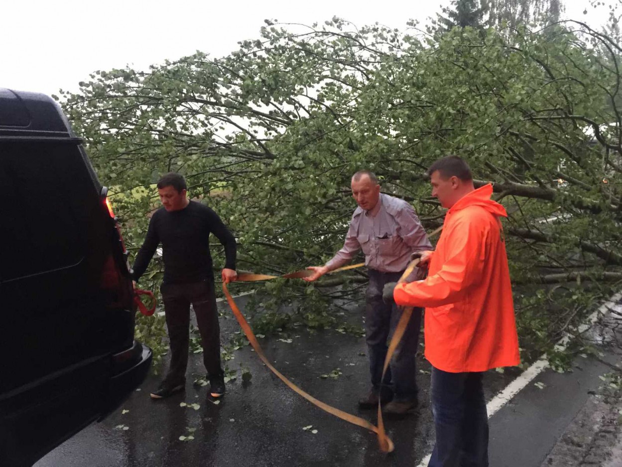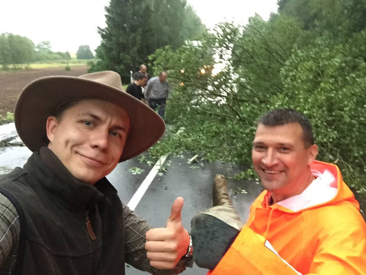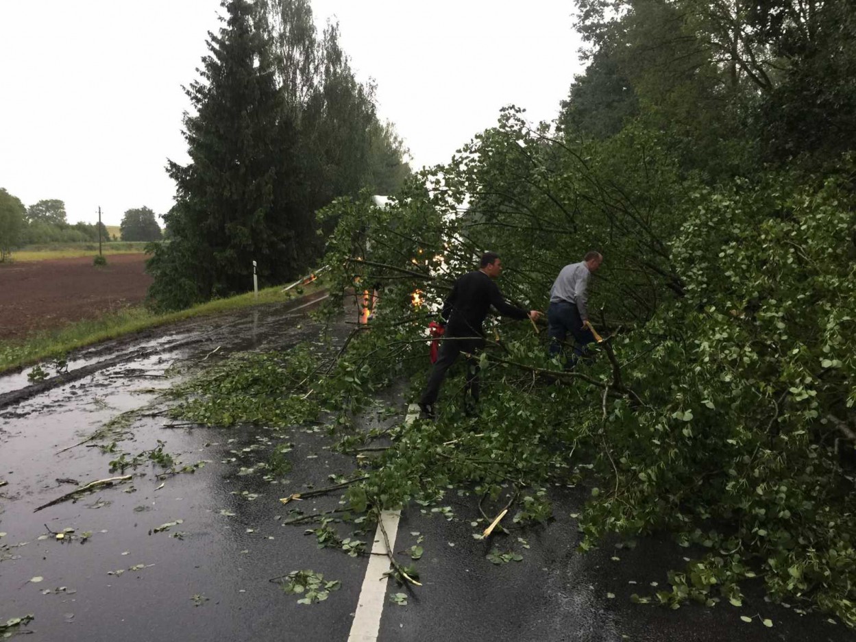 Už Ragožių nuvirtusį medį belaukdami ugniagesių traukė ir tuo metu pro šalį važiavę jonaviečiai, tarp kurių - ir Jonavos meras Mindaugas Sinkevičius.