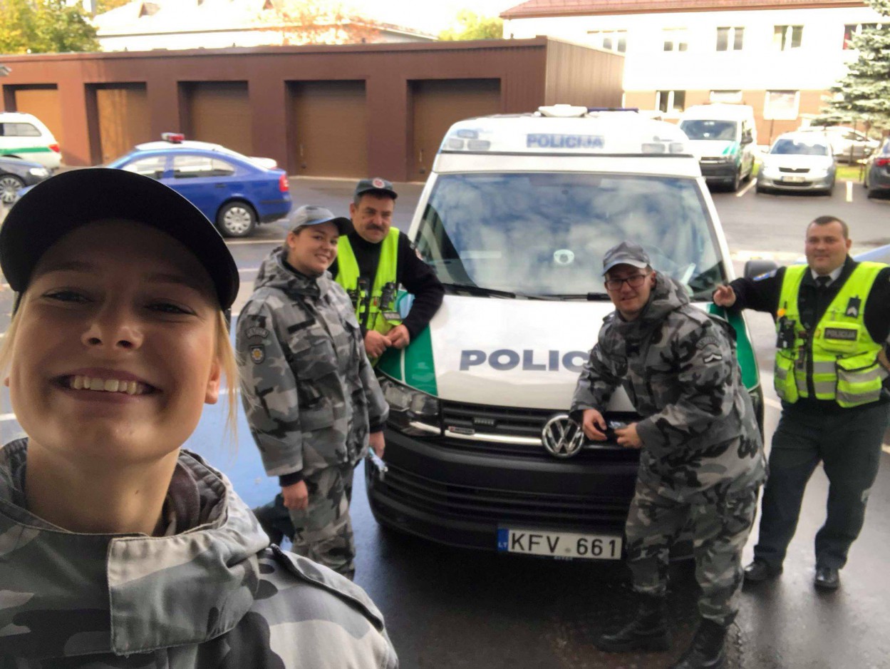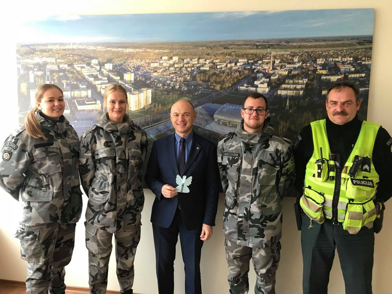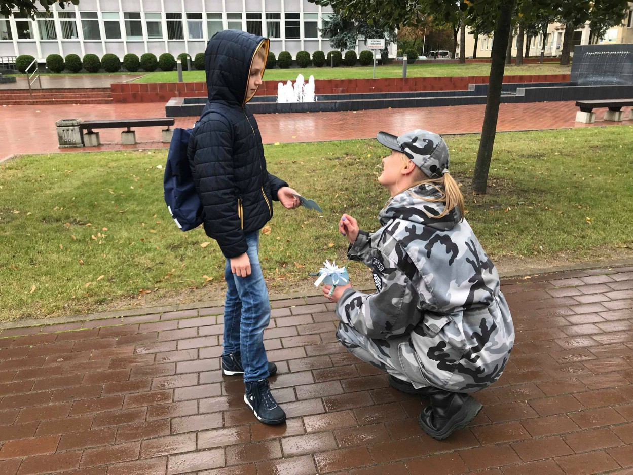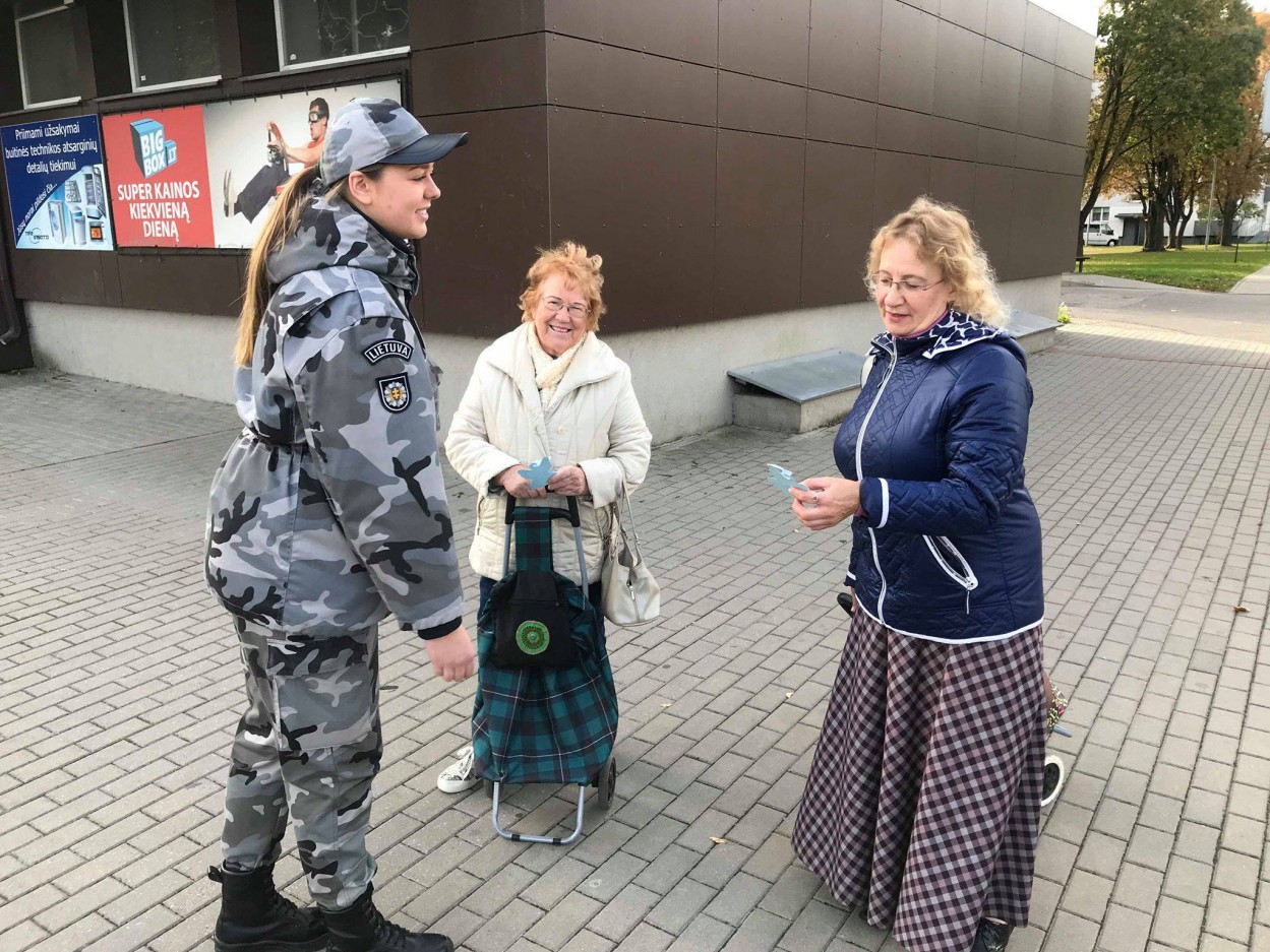 Būsimi policijos pareigūnai, Mykolo Romerio Viešojo saugumo akademijos studentai šiandien pasklido po Jonavos miestą, rankose nešini popieriniais angelais, kuriuos jie patys ir karpė.