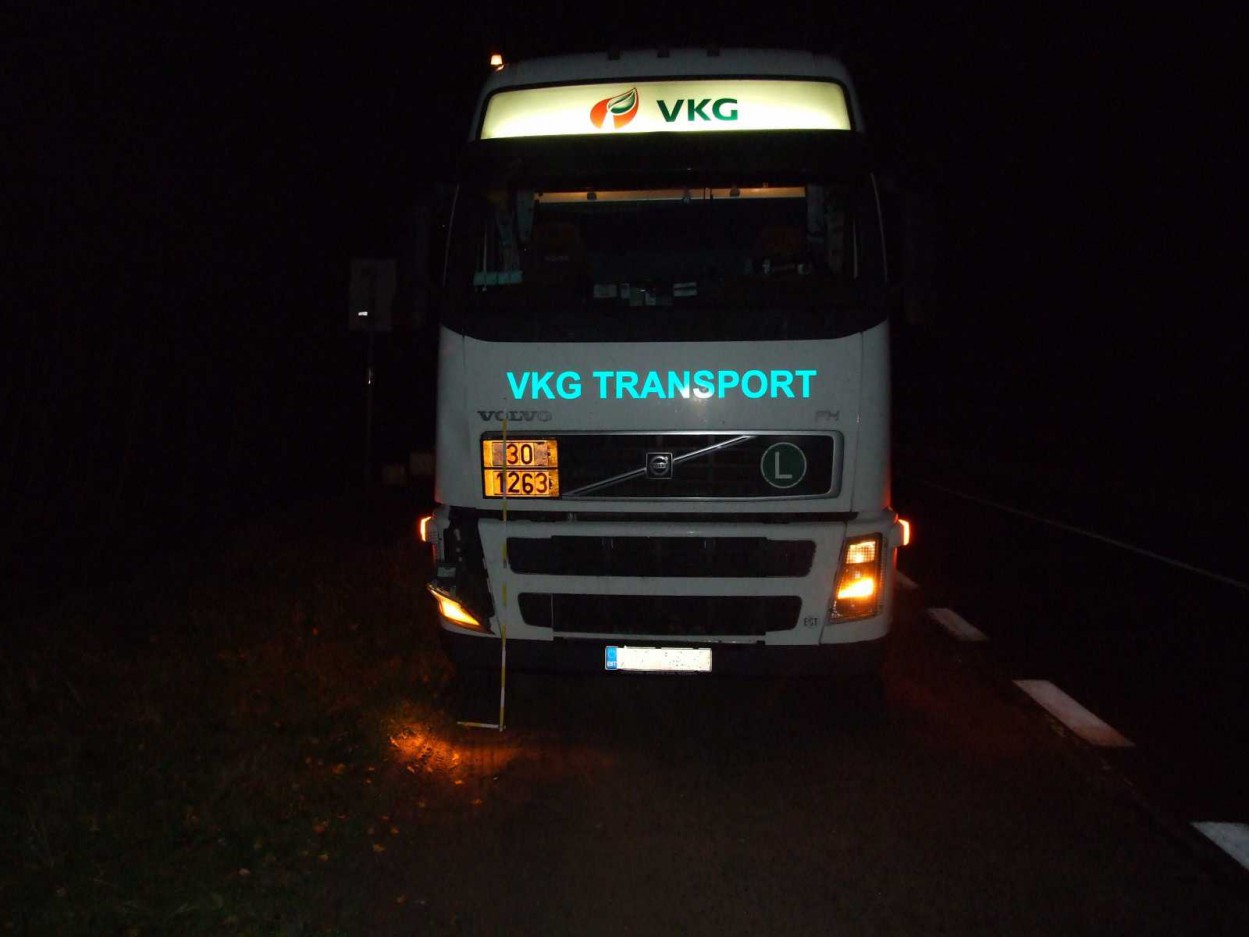 Vilkikas Volvo FH su puspriekabe-cisterna, vairuojamas Estijos gyventojo, partrenkė staiga į važiuojamąją kelio dalį išėjusį pėsčiąjį.