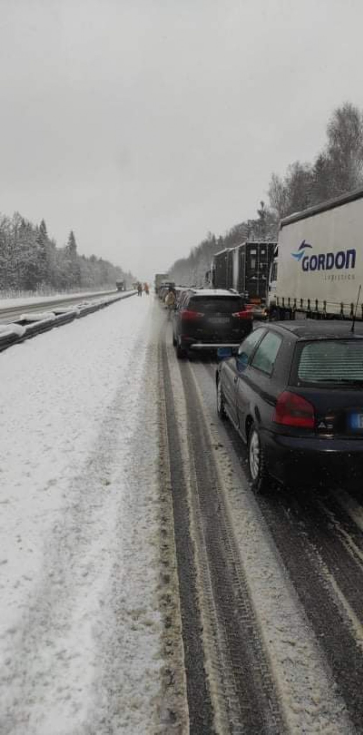 Lietuvą užklupusi pūga sukėlė daug nepatogumų vairuotojams - nuolat pranešama apie eismo įvykius skirtinguose šalies miestuose. Dėl slidžios kelio dangos, pirminiais duomenimis, kilęs eismo įvykis 14.15 val. sutrikdė eismą ir A6 kelyje.