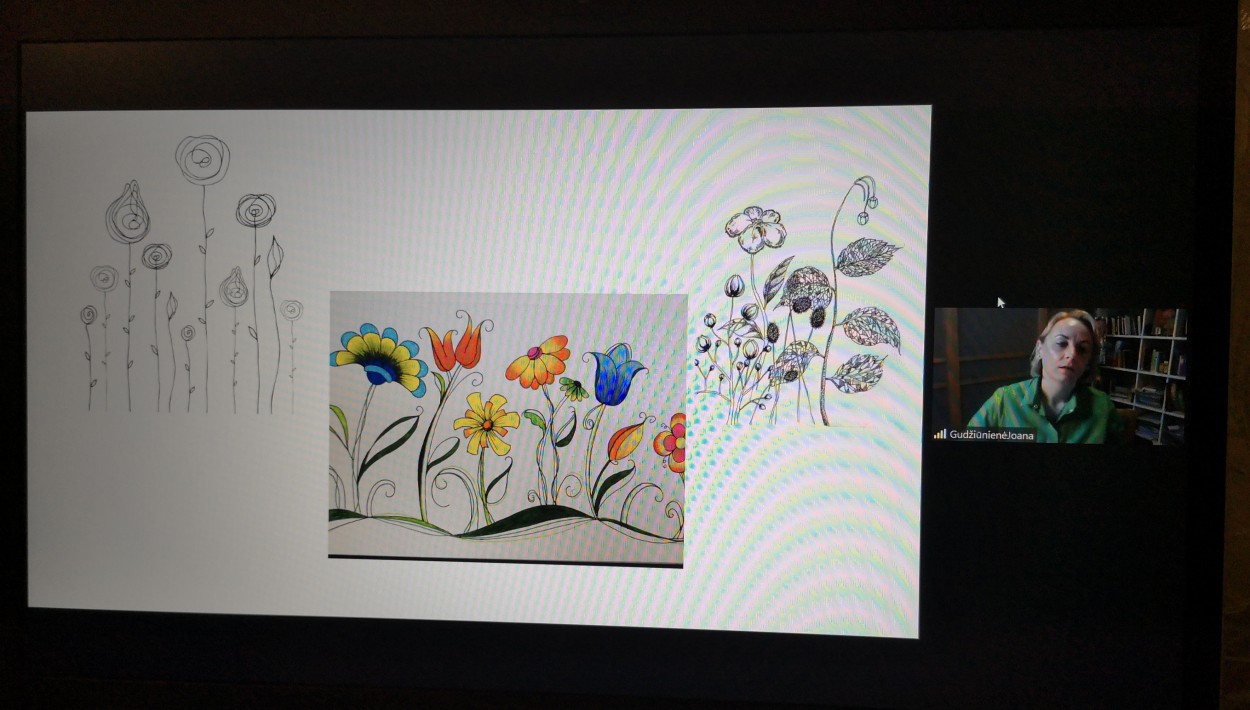 Po trumpo įvado užsiėmimo dalyviams buvo pasiūlyta paimti popieriaus lapą ir pasirinktomis dailės priemonėmis pavaizduoti savo šeimą gėlėmis. Skambant lyriškai muzikai, visi dalyvavusieji leido pasireikšti savo vaizduotei – ir popieriaus lapuose pražydo įvairiausių formų, spalvų, linijų augalai. Kai užduotis buvo atlikta, lektorė pakvietė keletą mamų pakomentuoti savo darbus, papasakoti, kodėl šeimas piešė būtent taip. Pasirodo, daugelis tai darė intuityviai, net negalėjo paaiškinti, kodėl artimuosius pavaizdavo būtent taip. Pasak lektorės, kiekviena detalė piešinyje turi savo prasmę, nes piešdami mes nesąmoningai perteikiame santykius, emocinę atmosferą, įvairias patirtis. Sakykim, nuskintos ir be šaknų gėlės rodo tam tikrą santykių nestabilumą, o pasodintos į vazoną perteikia santykių įrėminimą, apribojimus ir pan. Lektorė pasiūlė papildyti, pakoreguoti piešinius, pabrėždama, kad kiekviename amžiaus tarpsnyje yra įmanoma keisti savo emocinę būseną, mąstymą, transformuoti mintis į pozityvias, nes pastarosios turi didžiulės įtakos santykiams šeimoje.