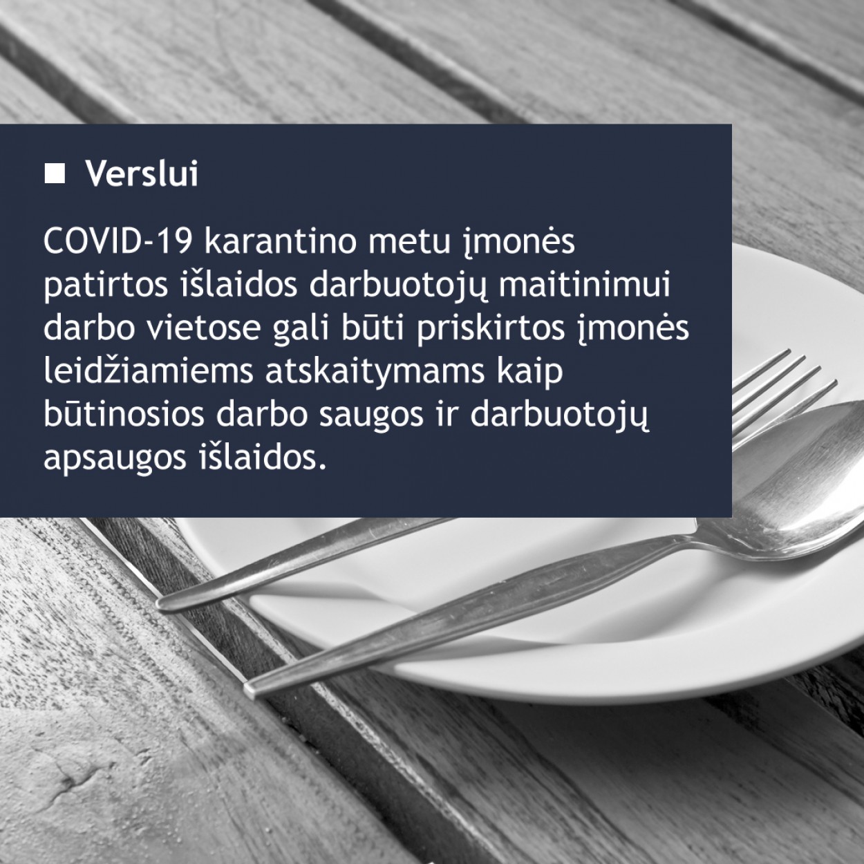 Kauno apskrities valstybinė mokesčių inspekcija (toliau – Kauno AVMI) informuoja, kad karantino dėl COVID-19 metu darbuotojų maitinimui darbo vietose įmonės patirtos išlaidos gali būti priskirtos įmonės leidžiamiems atskaitymams.