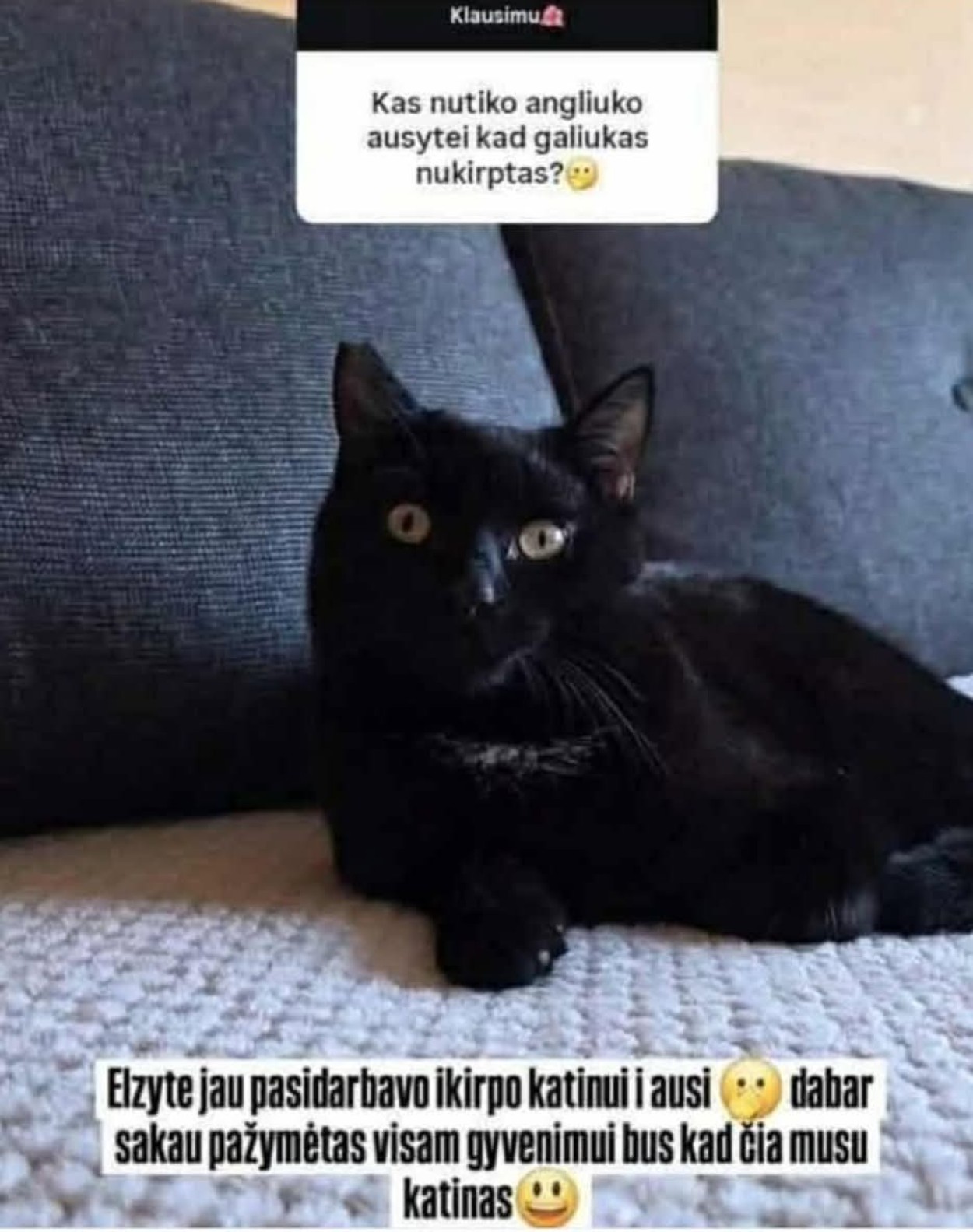 Vakar socialiniuose tinkluose pasklido vienos nuomonės formuotojos įrašas, kuriame buvo parodyta katino nukirpta ausies dalis, teigiant, kad tai padarė vaikas su žirklėmis, skelbia Valstybinė maisto ir veterinarijos tarnyba (VMVT).