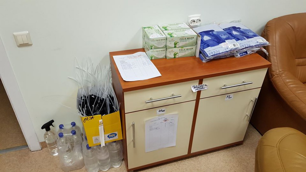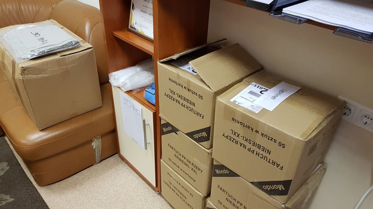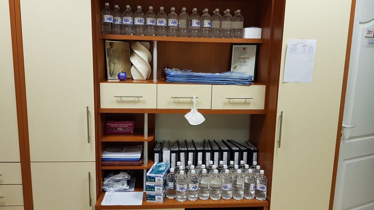 Vienkartinių kombinezonų, antbačių (bachilų) atvežė šios įstaigos: Jonavos rajono savivaldybės administracija, AB ,,Achema“, ŽŪB „Pauliukai, UAB „Verslo tiltas“, Ervino labdaros ir paramos fondas. Liko nepaminėti iš apsaugos priemonių chalatai ir akiniai, kuriais mus parėmė Jonavos rajono savivaldybės administracija, AB ,,Achema.
