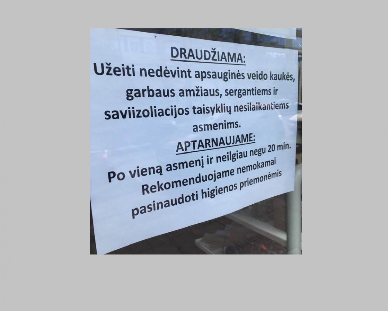 Pastaruoju metu Lygių galimybių kontrolieriaus tarnybą pasiekė keliskart daugiau negu įprastai gyventojų kreipimųsi dėl galimos diskriminacijos amžiaus pagrindu. Į tarnybą kreipiamasi dėl prekybos vietose, kavinėse, kirpyklose ant durų kabančių užrašų, pranešančių, kad įstaigoje nerekomenduojama (kai kuriais atvejais – draudžiama) lankytis asmenims, esantiems rizikos grupėje, t. y. vyresniems nei 60 m. asmenims ir (arba) sergantiems lėtinėmis ligomis. Gyventojai šiuos pranešimus vadina neetiškais ir žeidžiančiais vyresnių žmonių orumą. Kreipiamasi ir dėl rizikos grupes apibrėžiančių teisės aktų atitikimo nediskriminavimo įstatymams, taip pat – dėl vyresnių asmenų darbuotojų teisių.
