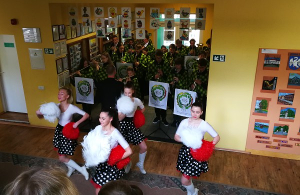 Popietę Santarvės aikštėje turėjęs vykti J.Miščiukaitės meno mokyklos pučiamųjų instrumentų orkestro ir šokių grupės (vadovai Tomas Poškus, Daiva Aleksynienė) pasirodymas, dėl prastų oro sąlygų perkeltas į mokyklos patalpas, tačiau šventinė nuotaika – nesubjuro.