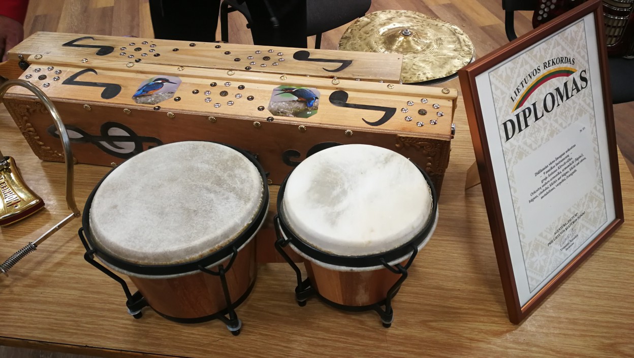Šiandien Antanas Kirvelevičius prie jau turimų 9 instrumentų pridėjo naują, savo rankomis pagamintą būgnelį. Penkias minutes Antanas grojo jau 10 instrumentų. Atlikėjo muzikavimas nepertraukiamai nufilmuotas ir bus siunčiamas Lietuvos rekordų registravimo agentūrai “Factum”.