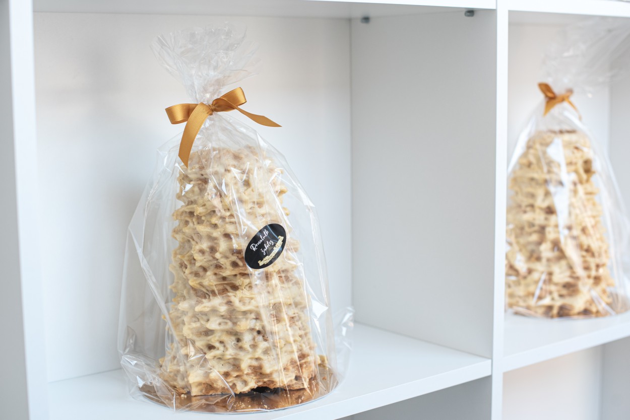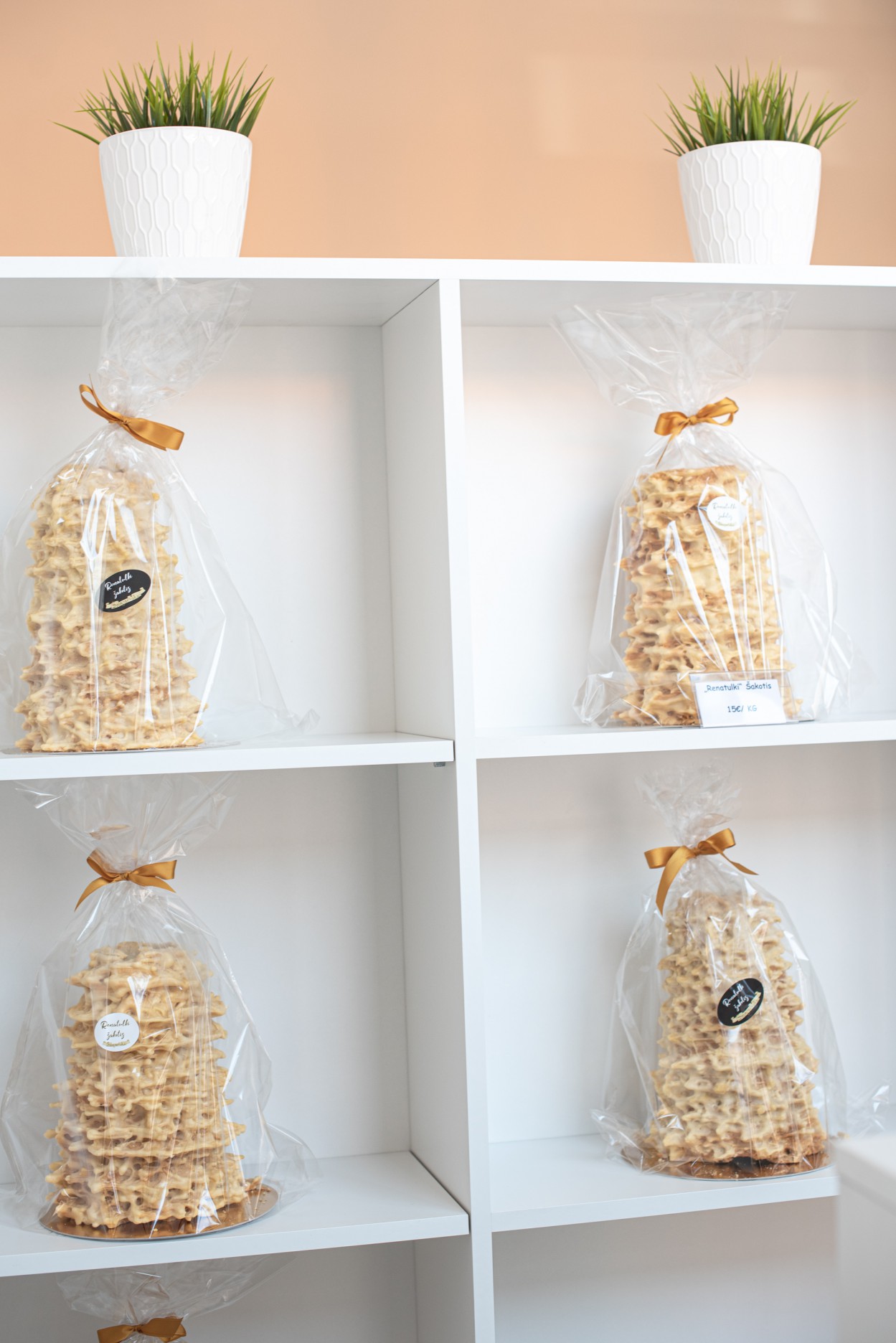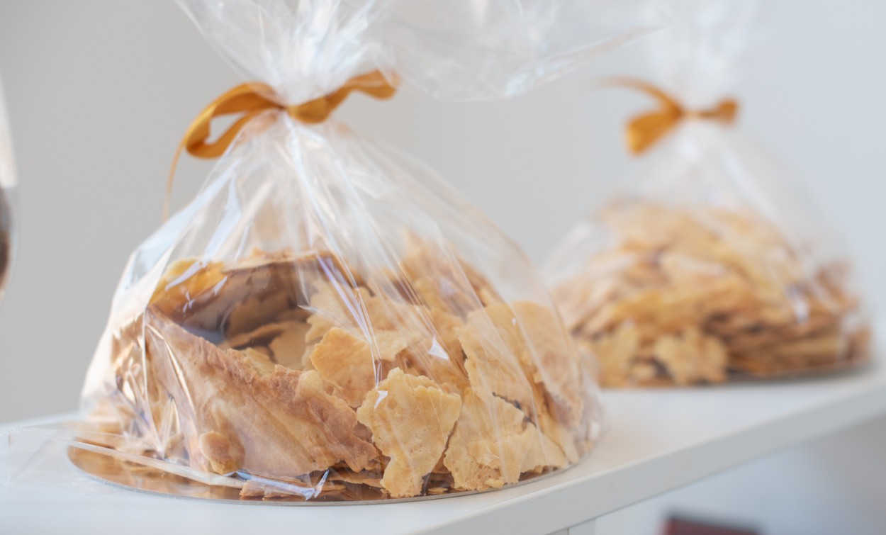Na, o kepant šakočius, matėme, kad nuo jų vis krenta tešlos gabaliukai. Nusprendėme panaudoti ir juos – gabaliukai išlyginami ir taip padaromi ,,čipsai". Matome, kad jie patiko klientams ir jie perka juos“, – pasako A. Silickas.