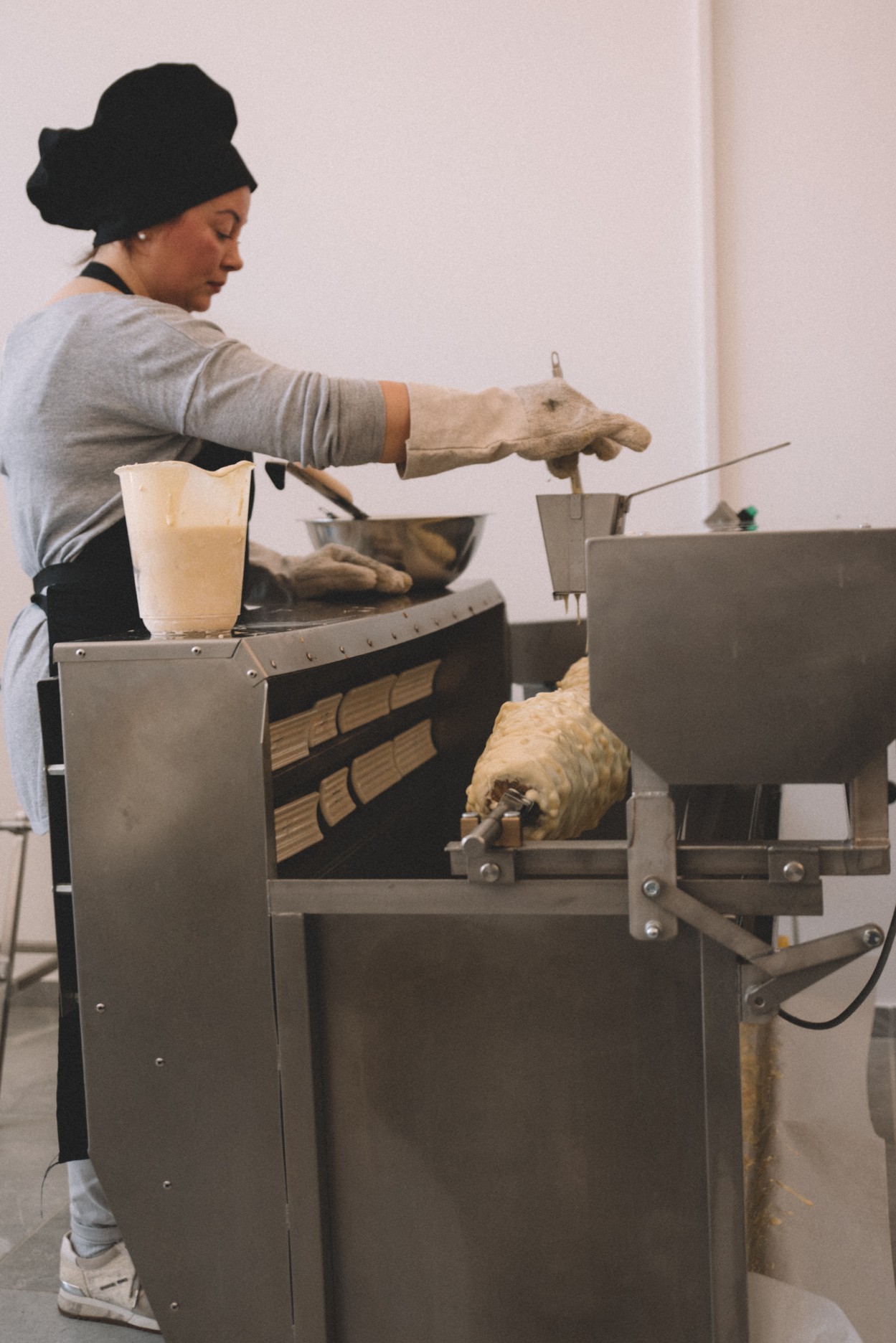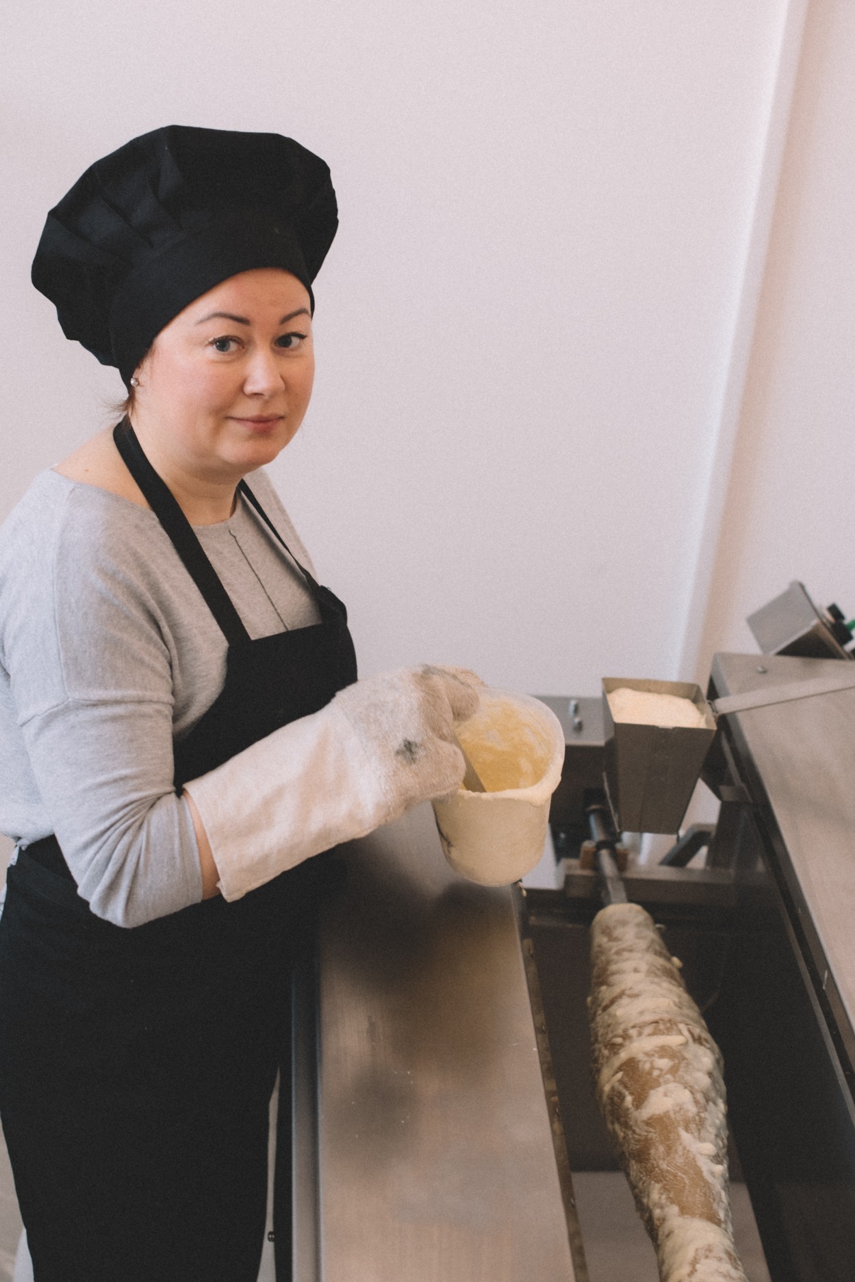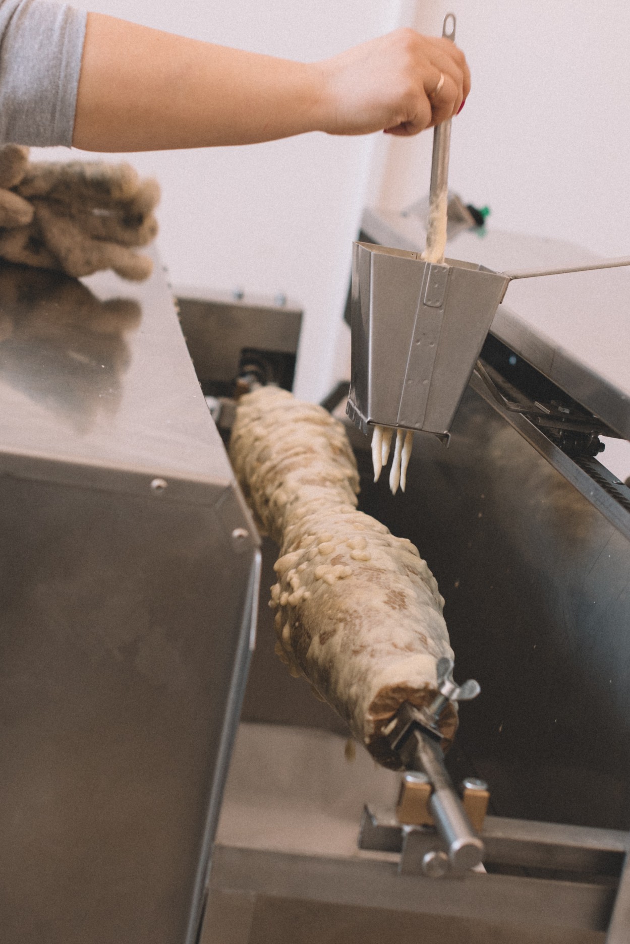 ,,Galiu pasakyti, kad reikia ,,pažaisti“. Nors mūsų kepimo aparatai automatizuoti, sukantis šakočiams reikia juos prižiūrėti: kartais reikia greitesnio tempo, kartais – lėtesnio.