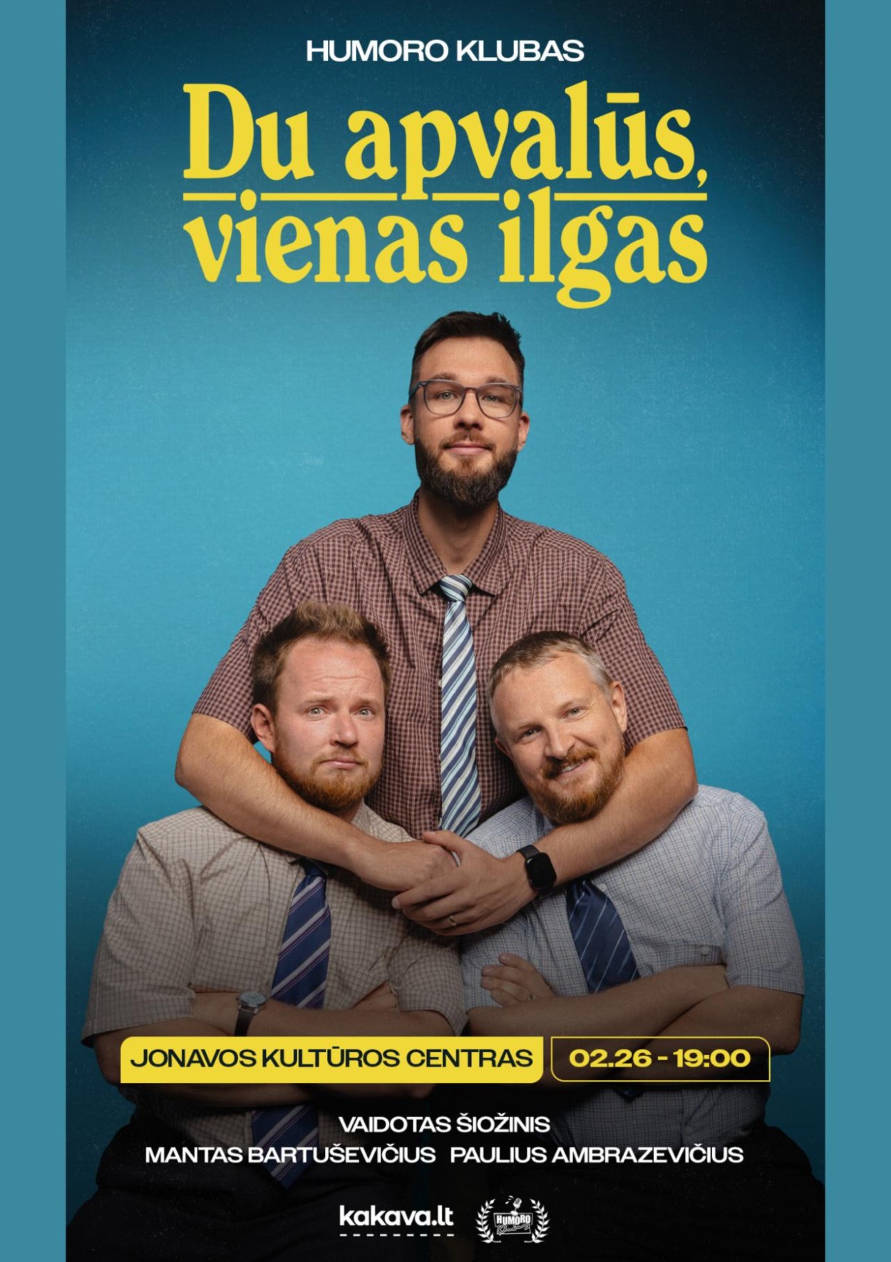 26 d. 19:00 „Humoro klubas“ su programa „Du apvalūs, vienas ilgas“ / Didžioji salė